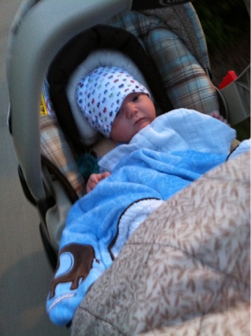 There are just certain things that make you feel like a mom. one of them is your first stroller ride with your baby. Ours has the car seat attachment for newborns. ( thanks rosie and alison) Lincoln was pretty confused to be in his seat rollin, yet not in the car. He liked it though
